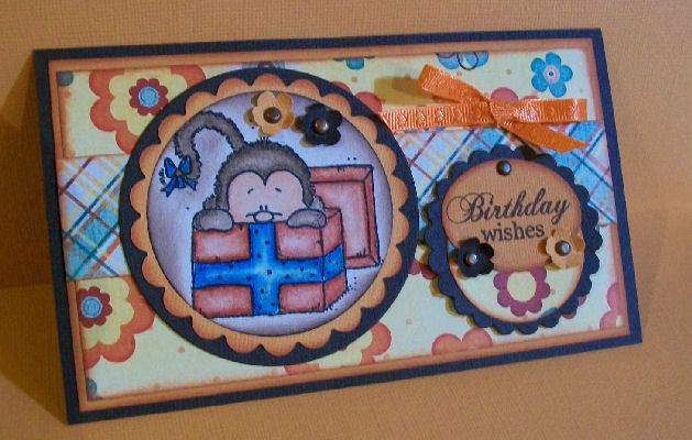 Hallo Mädels....Heute habe ich auch einmal eines von den süßen Äffchen gestempelt...bei Nancy hab ich ein wenig abgekupfert und auch mal eine längliche Karte gemacht...